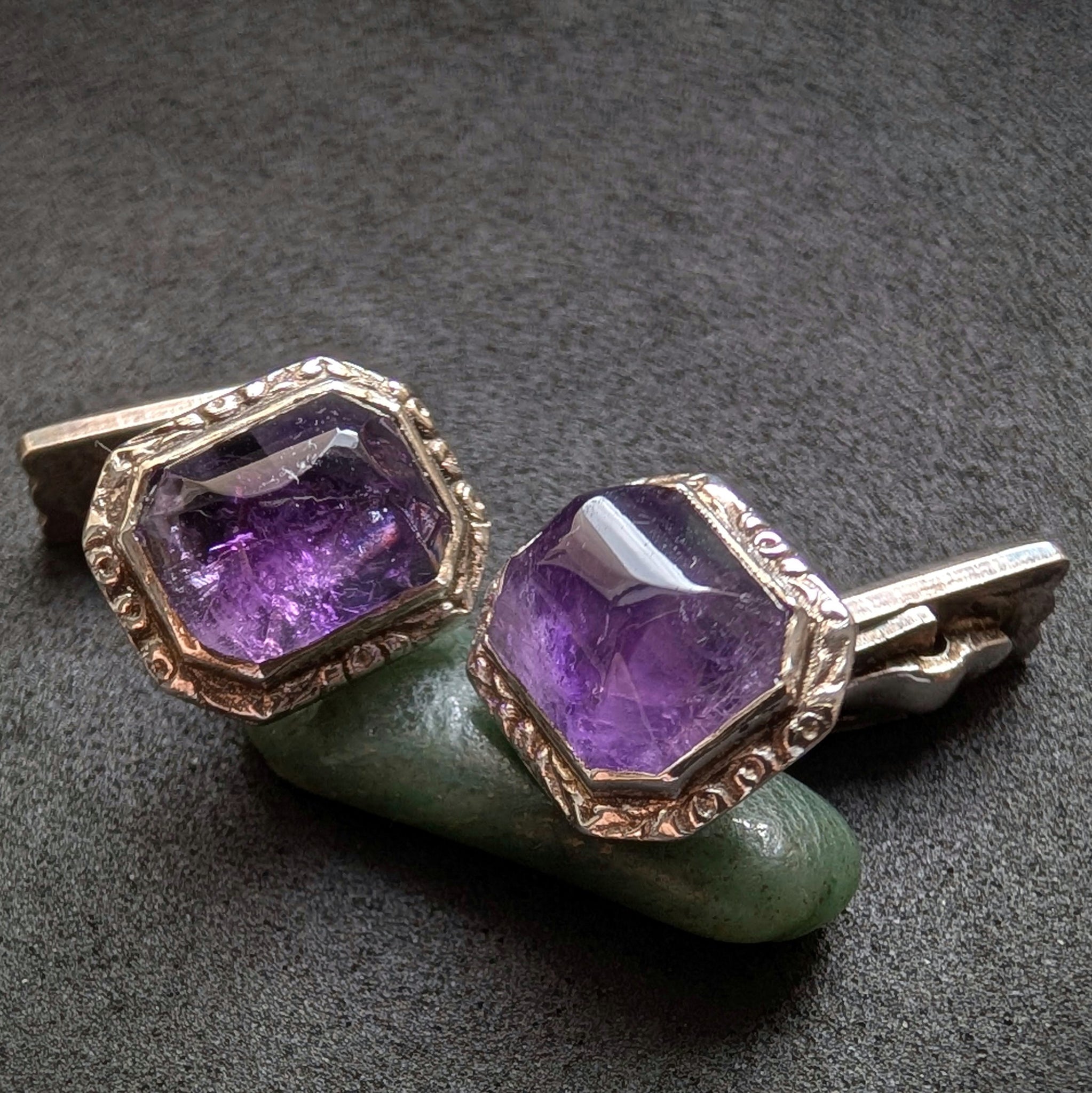 • Load image into Gallery viewer, Art Deco Manschettenknöpfe 800 Silber Amethyst alt antik c. 1920 S