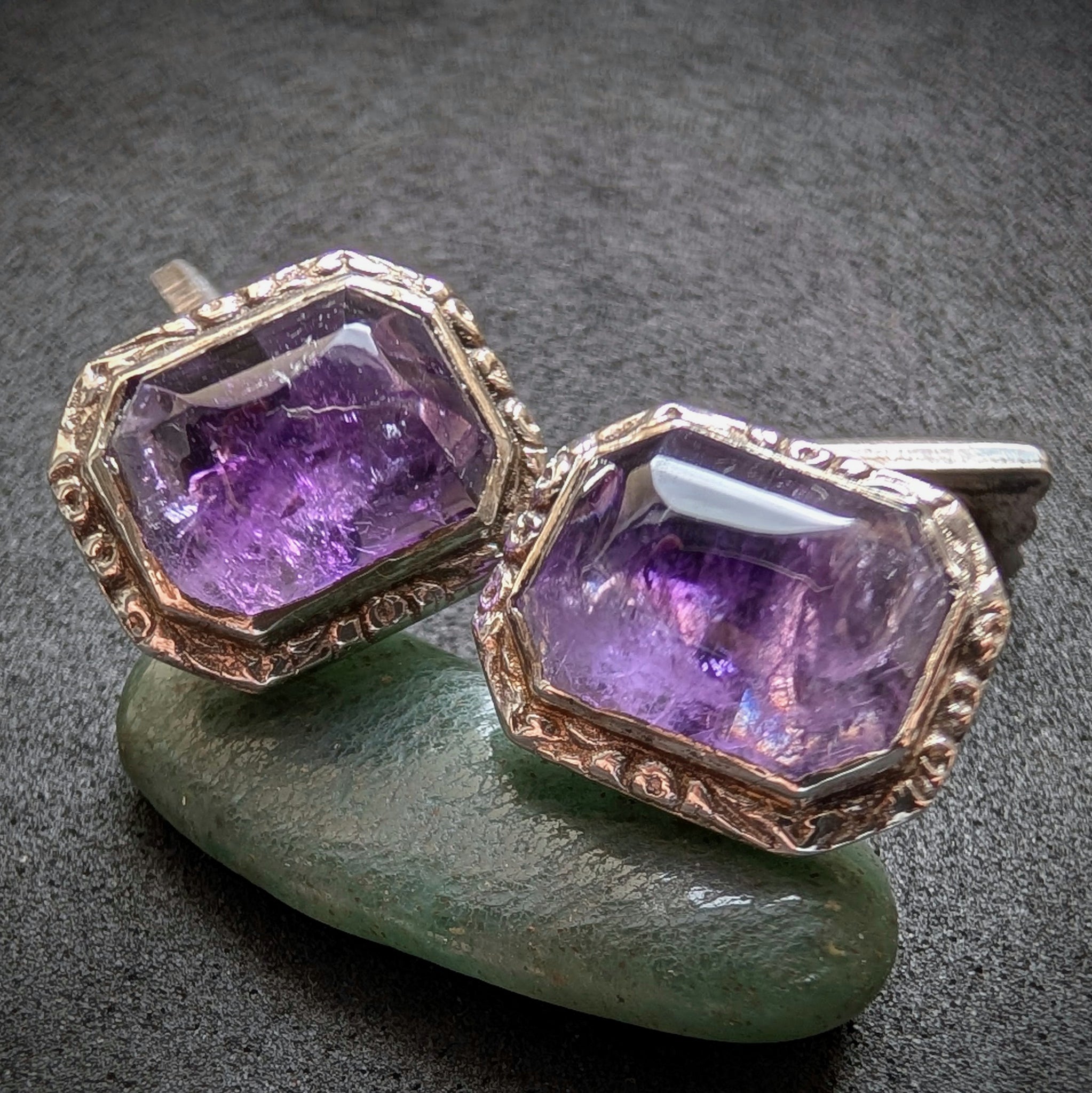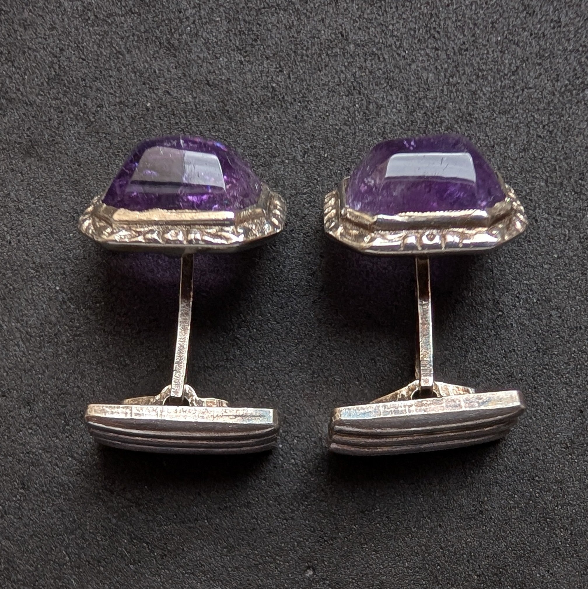 Art Deco Manschettenknöpfe 800 Silber Amethyst alt antik c. 1920 S