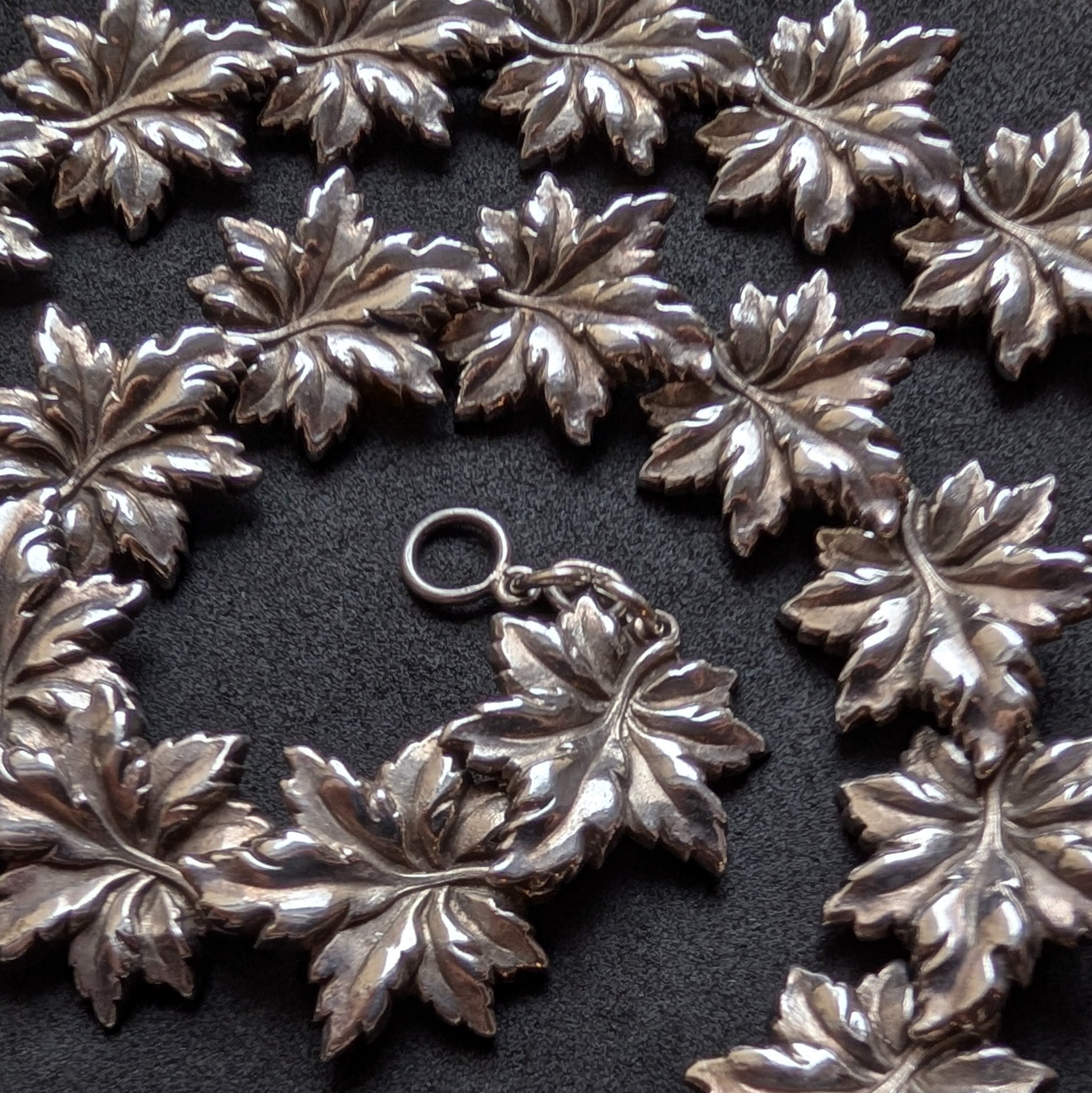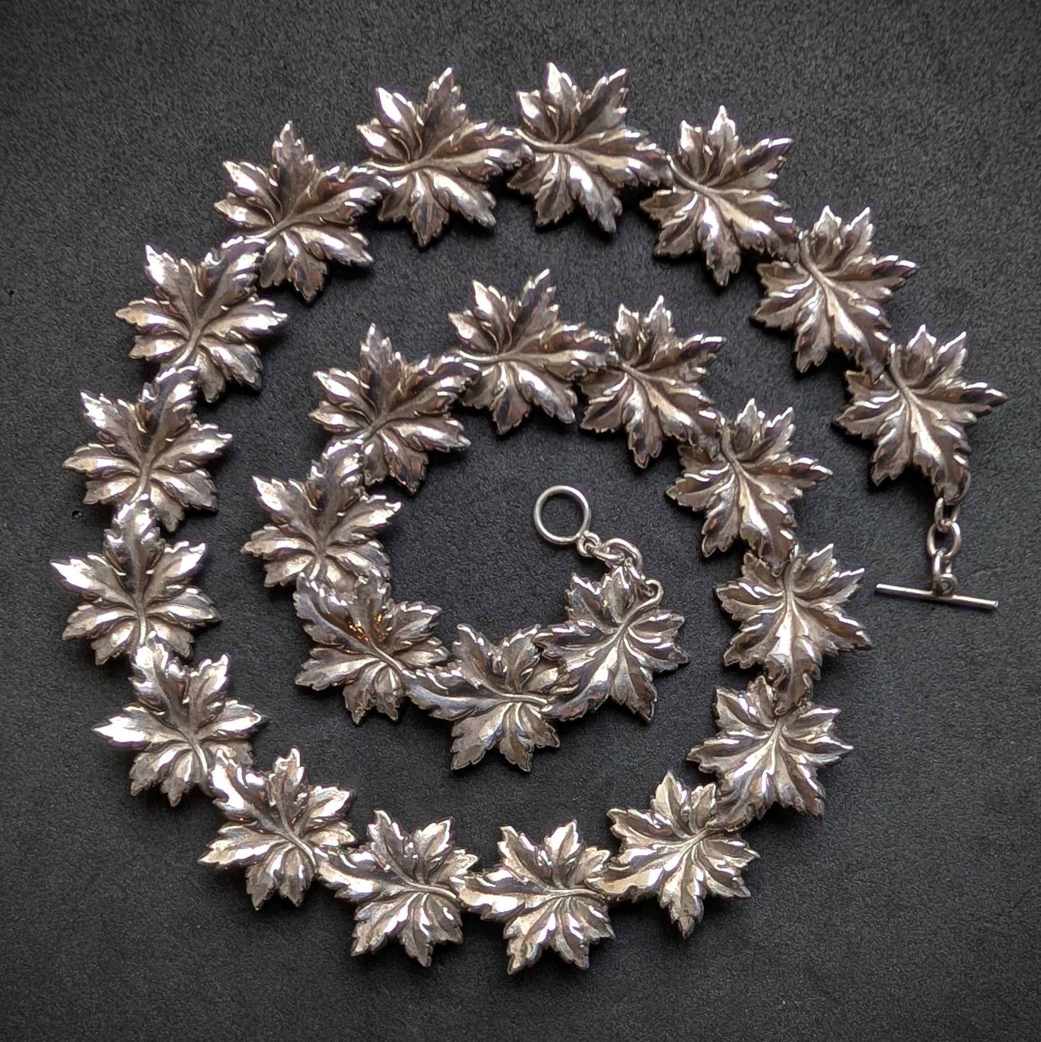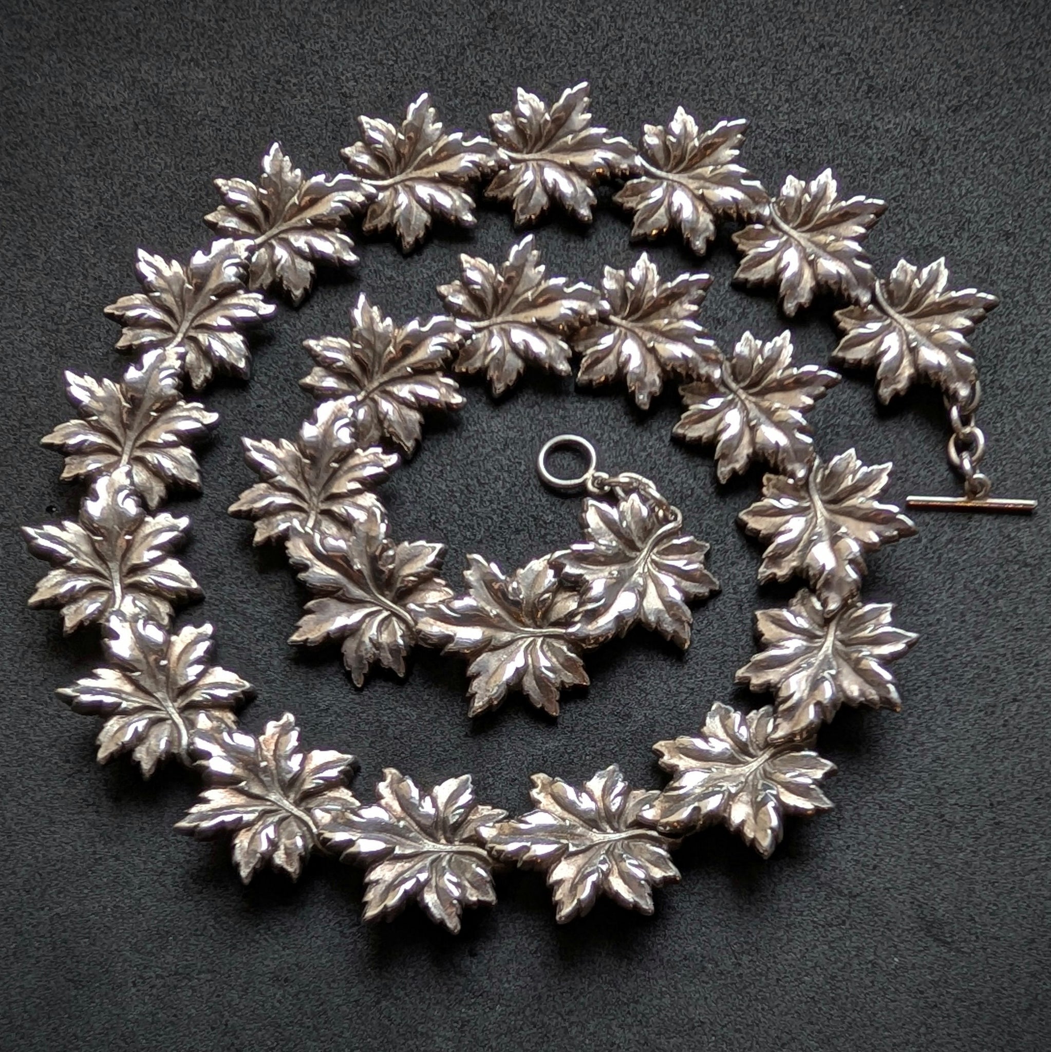 Jugendstil Art Deco Ahornblatt Collier Kette 925 Silber Handarbeit alt antik S