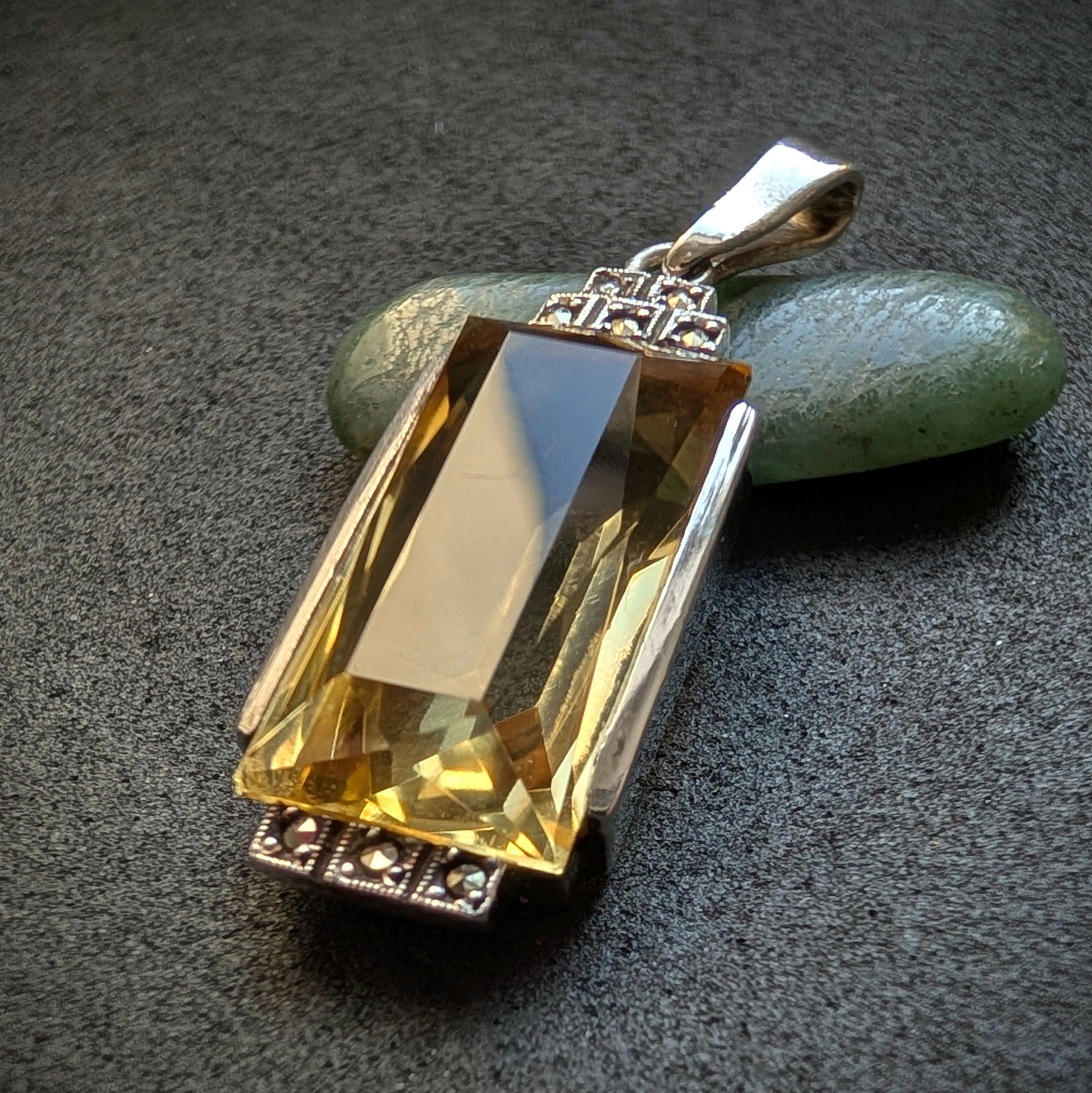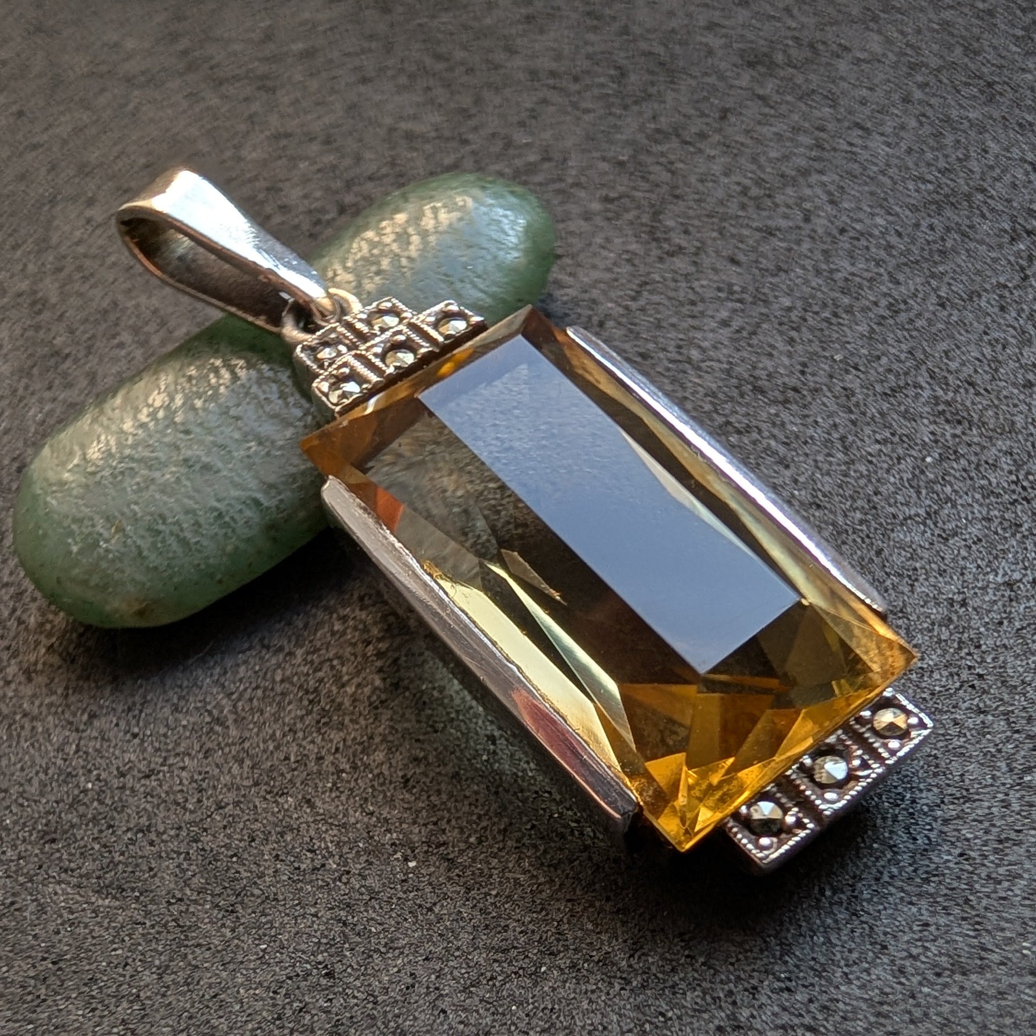 Art Deco Anhänger 935 Silber Citrin Markasit alt antik c. 1920