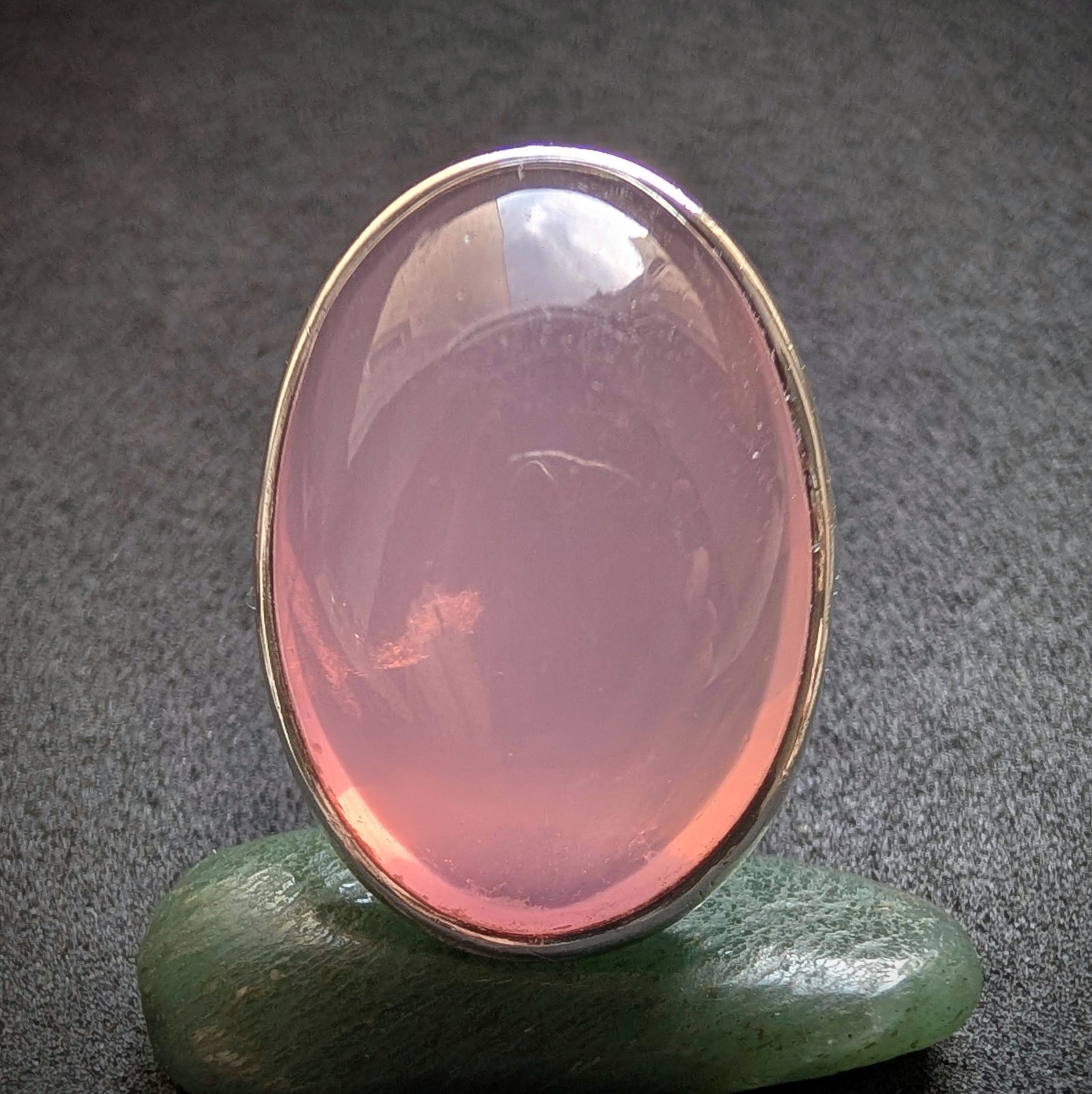 Jugendstil Art Deco Ring 935 Silber Rosenquarz rosa alt antik c. 1920 RG 56 S