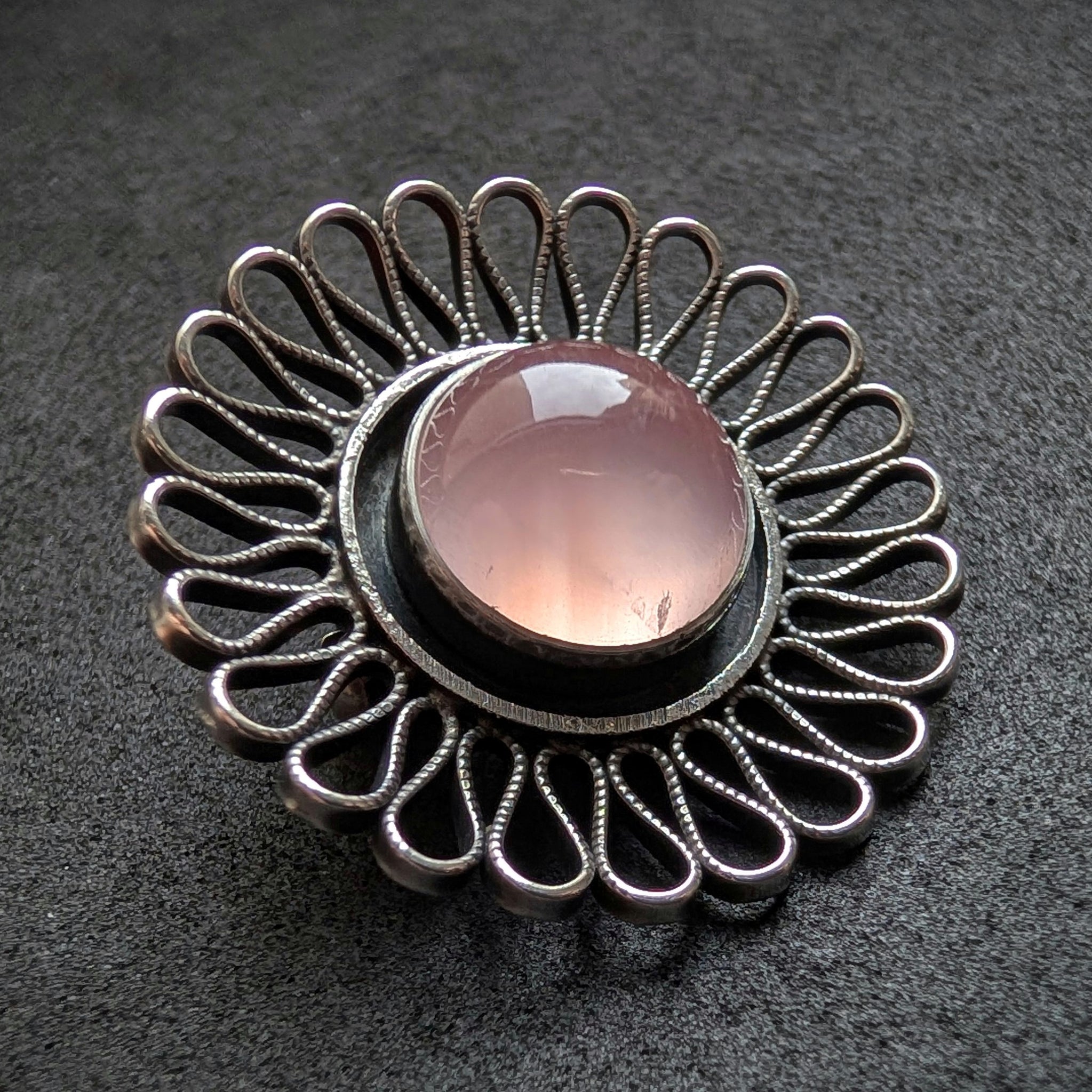 Vintage Brosche Gustav Hauber 835 Silber Rosenquarz Midcentury alt c. 1950 S