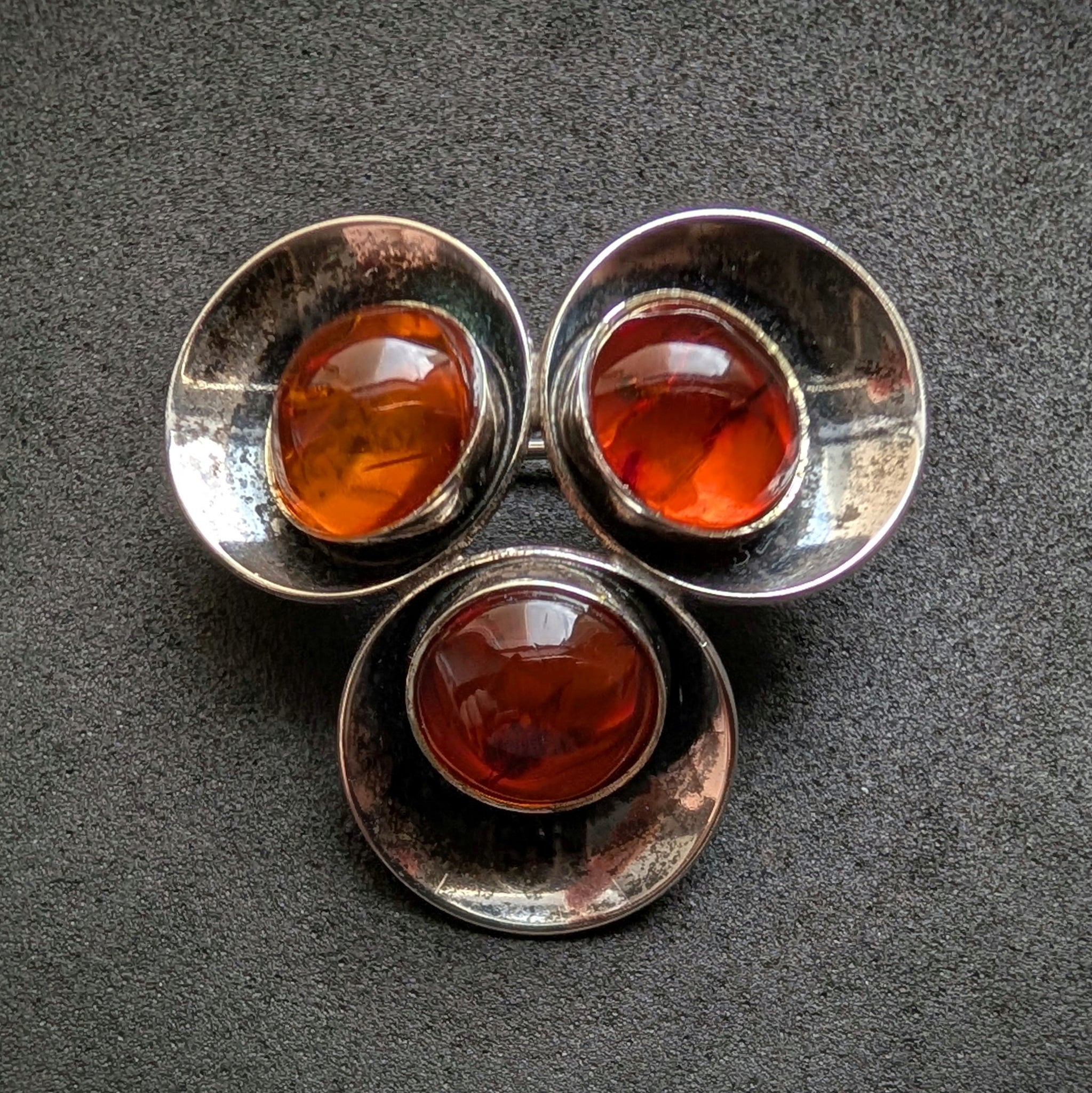 Vintage Brosche NE From Denmark 925 Silber Bernstein Silberschmiedearbeit alt S
