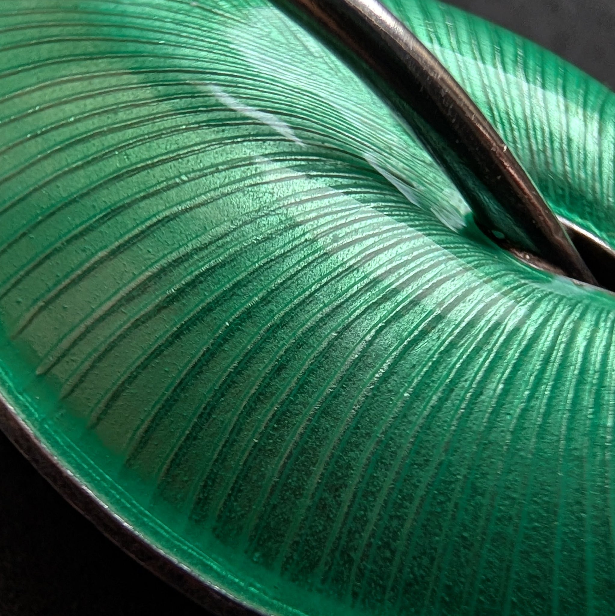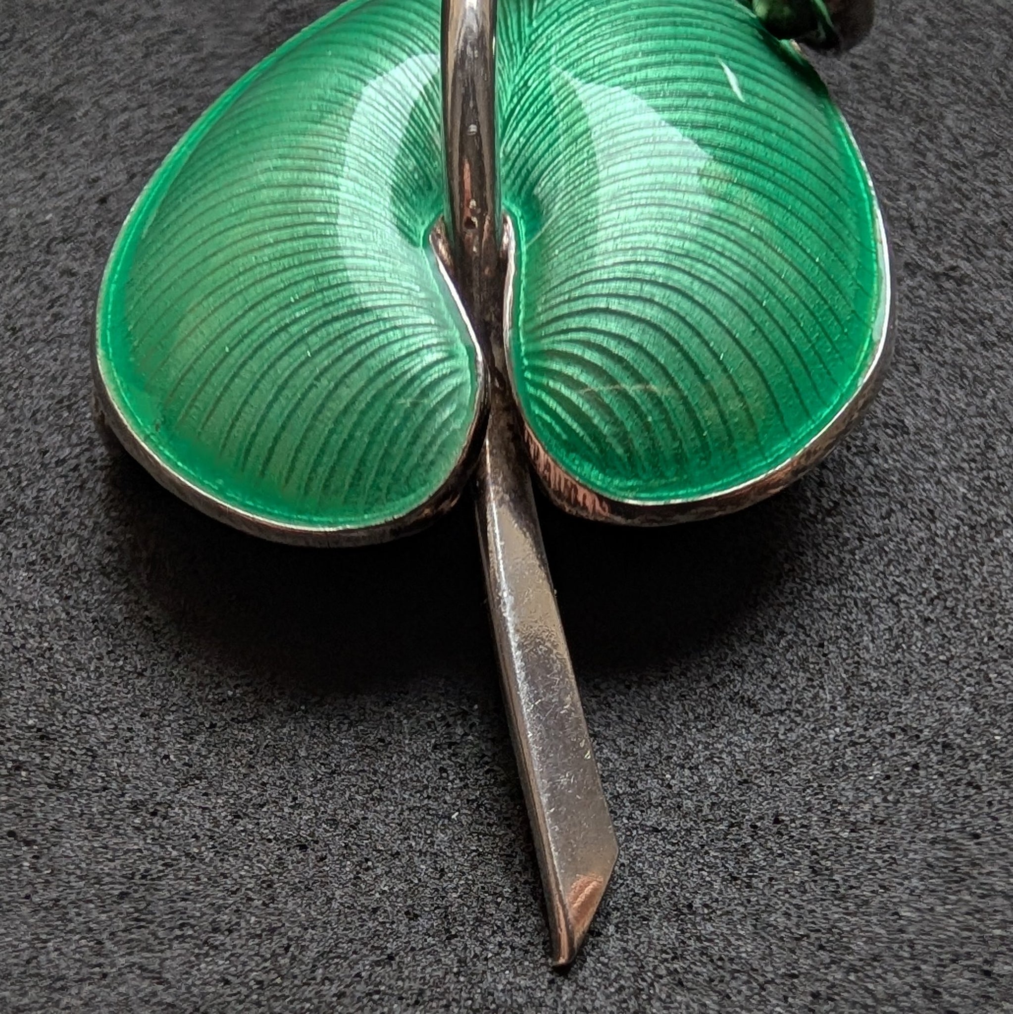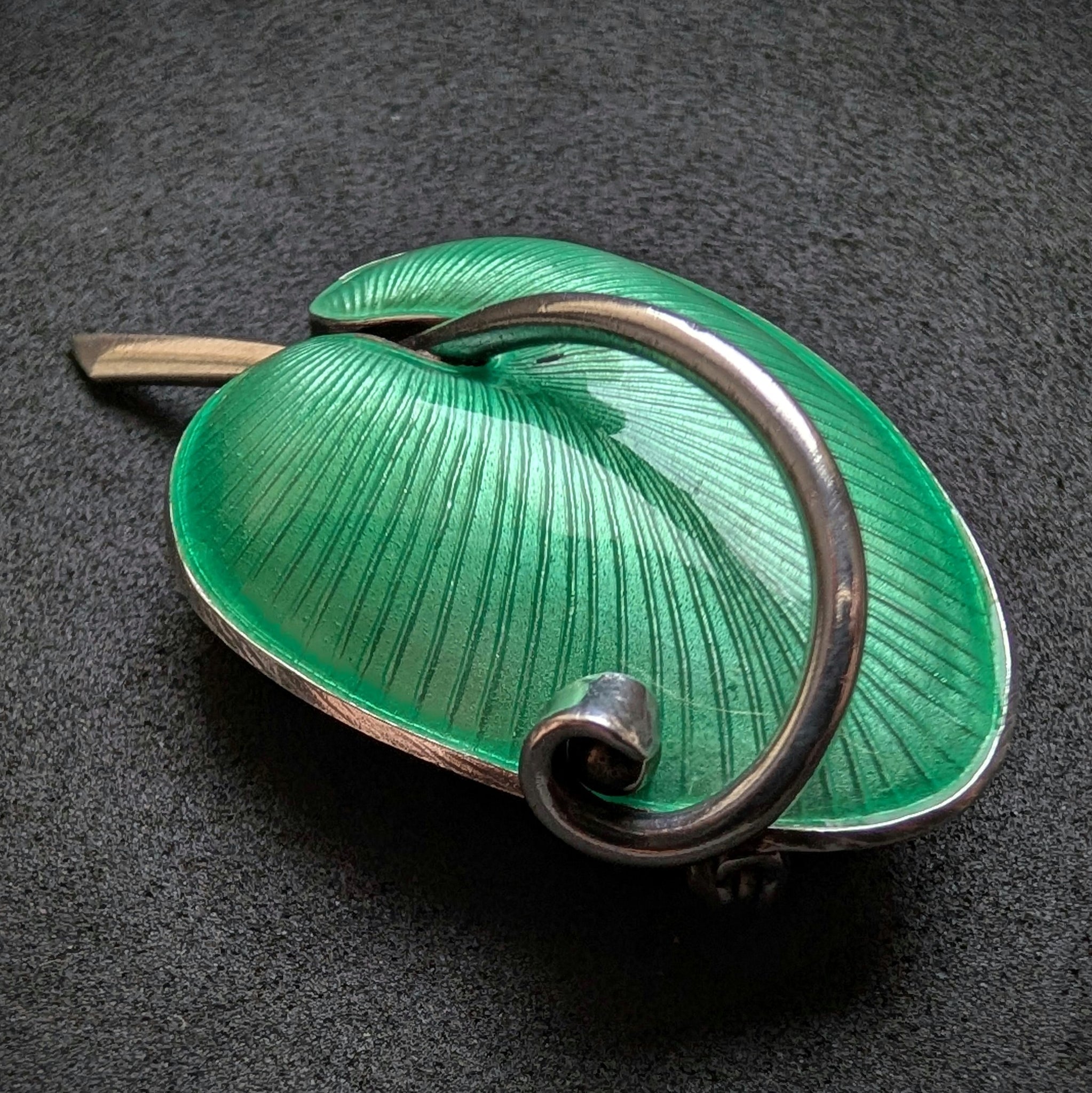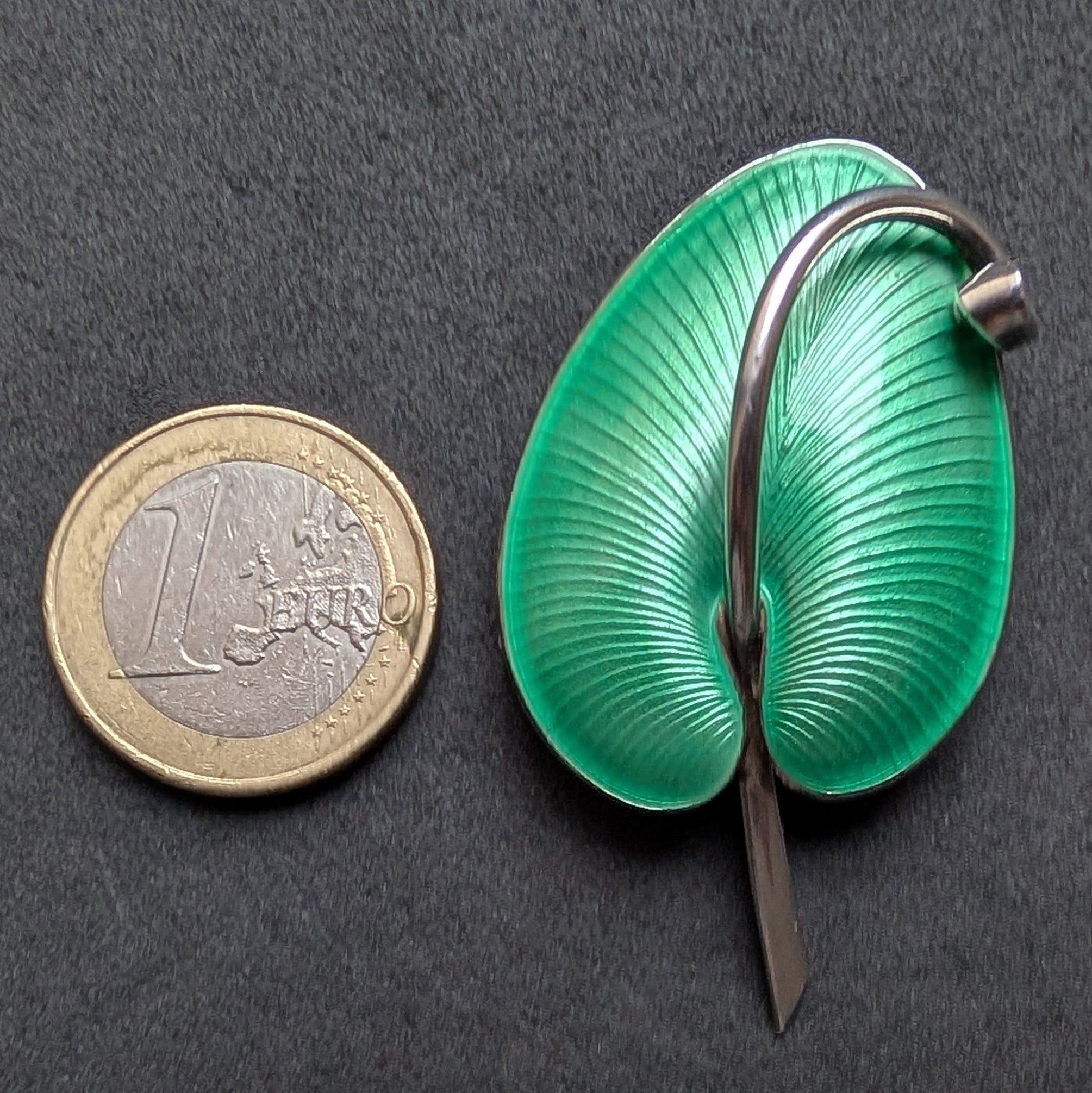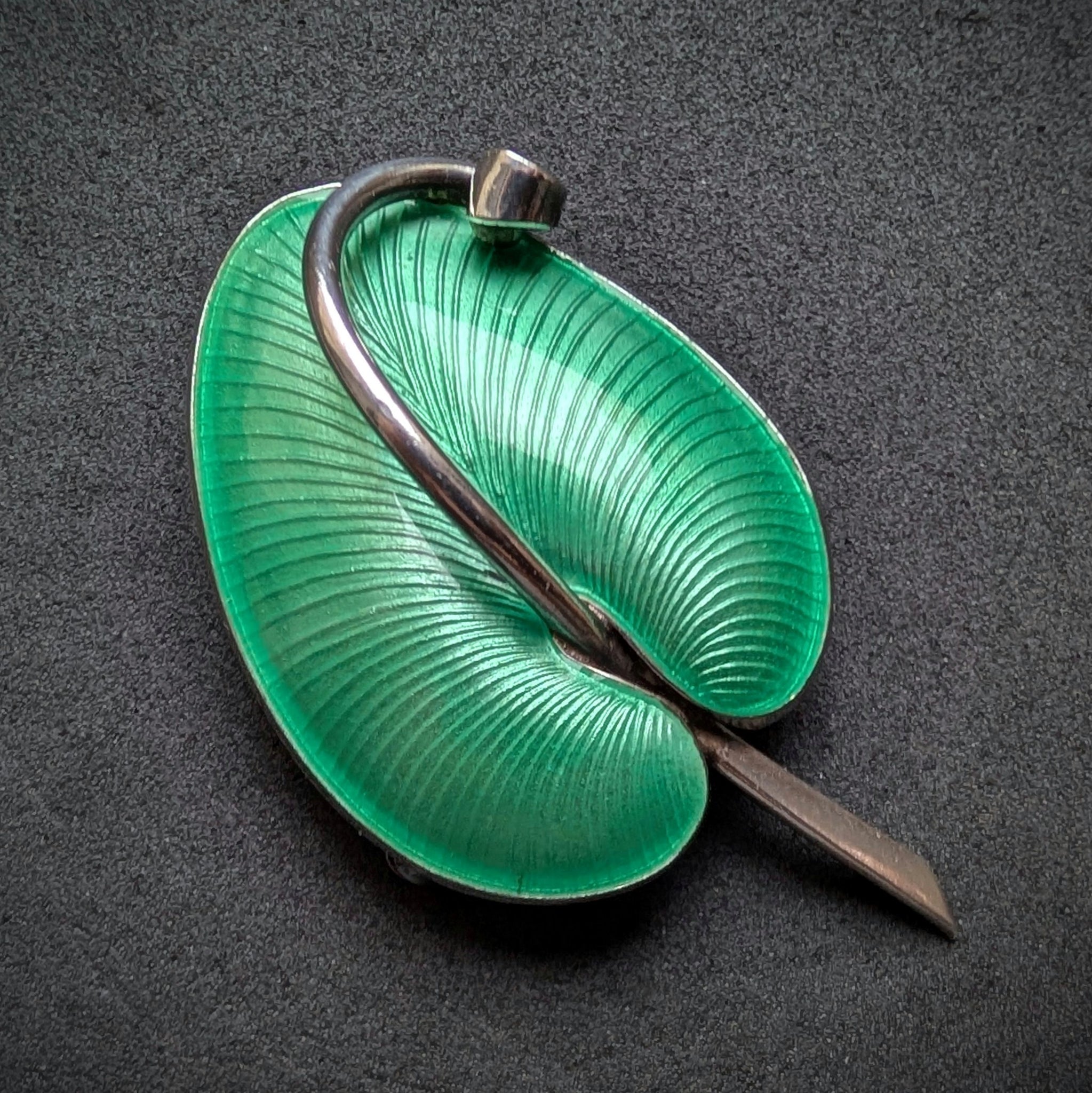 Vintage Emaille Blatt Brosche Volmer Bahner Denmark VB Sterling Silber 925 alt S