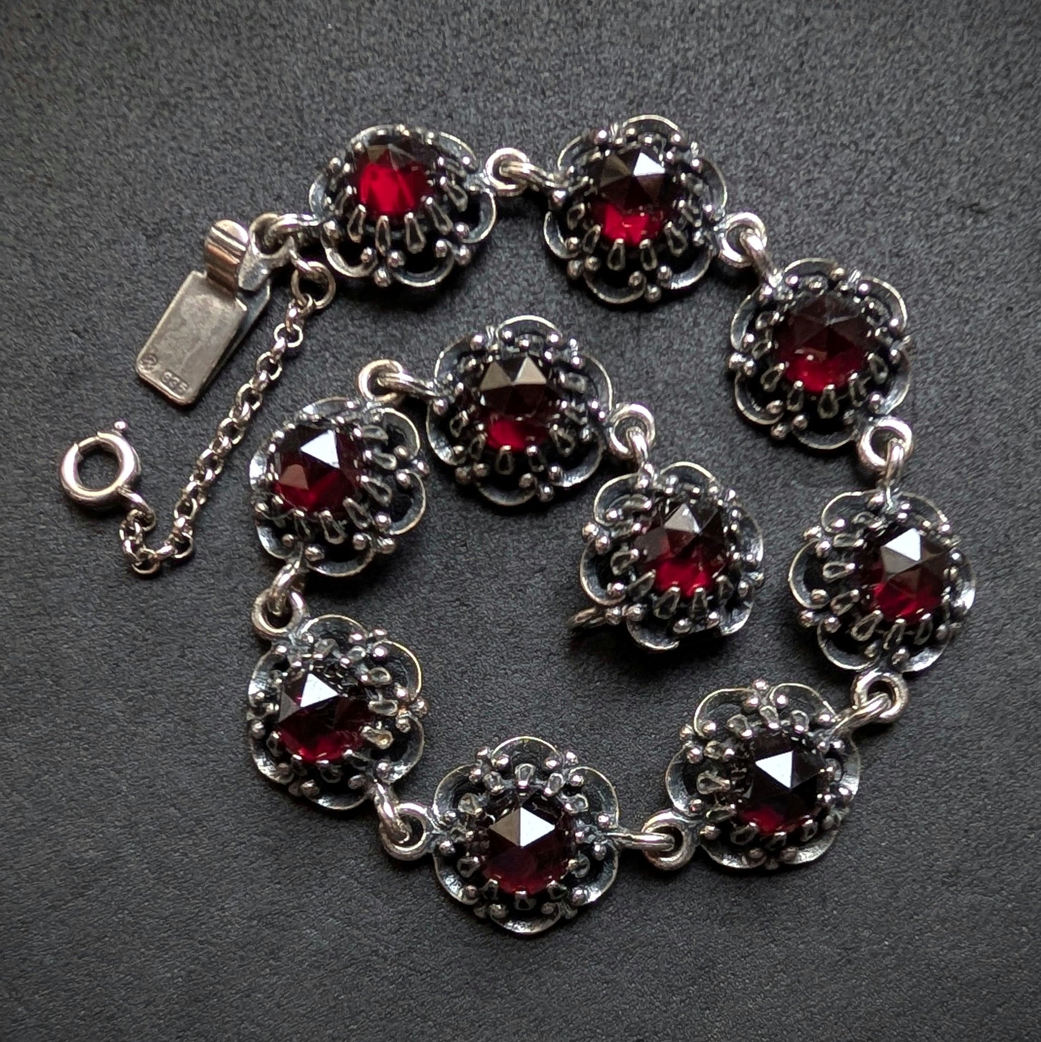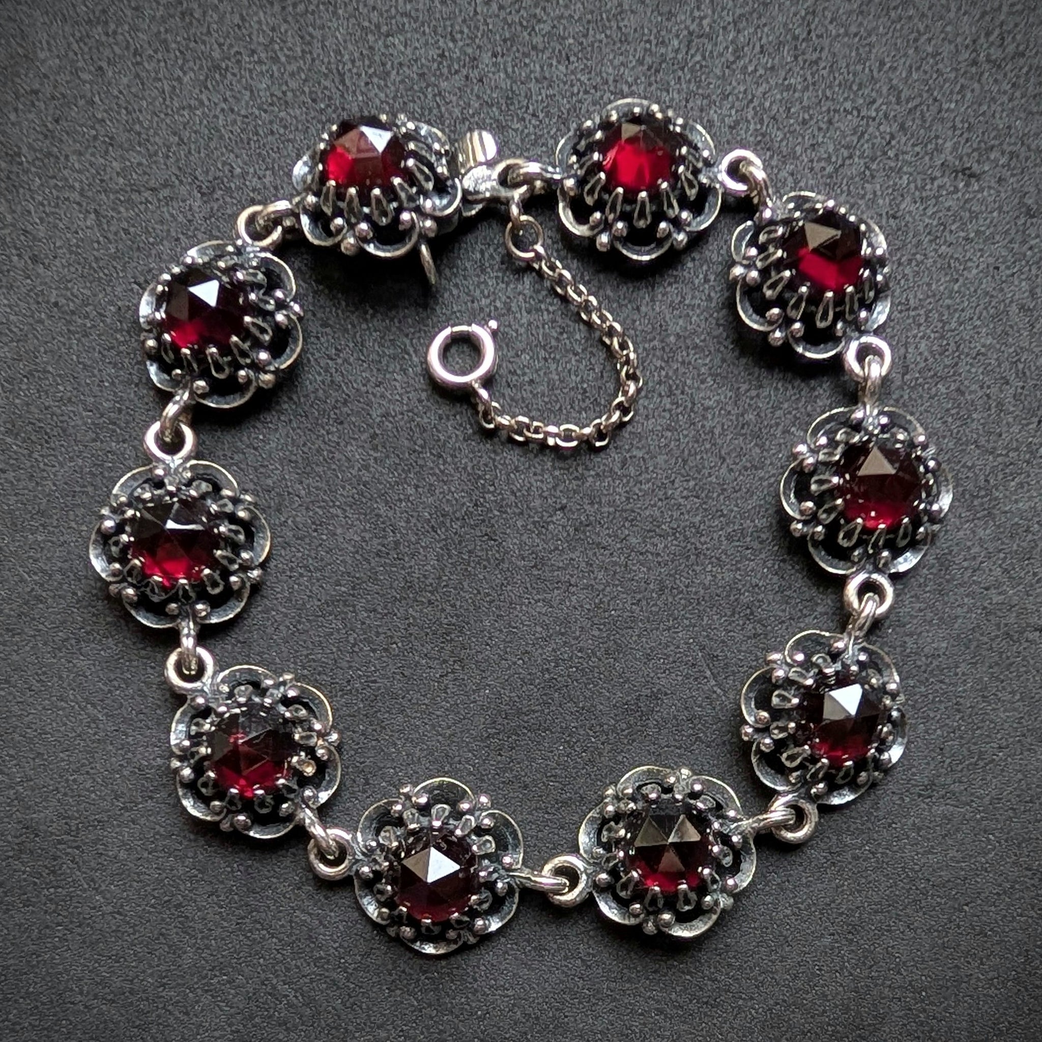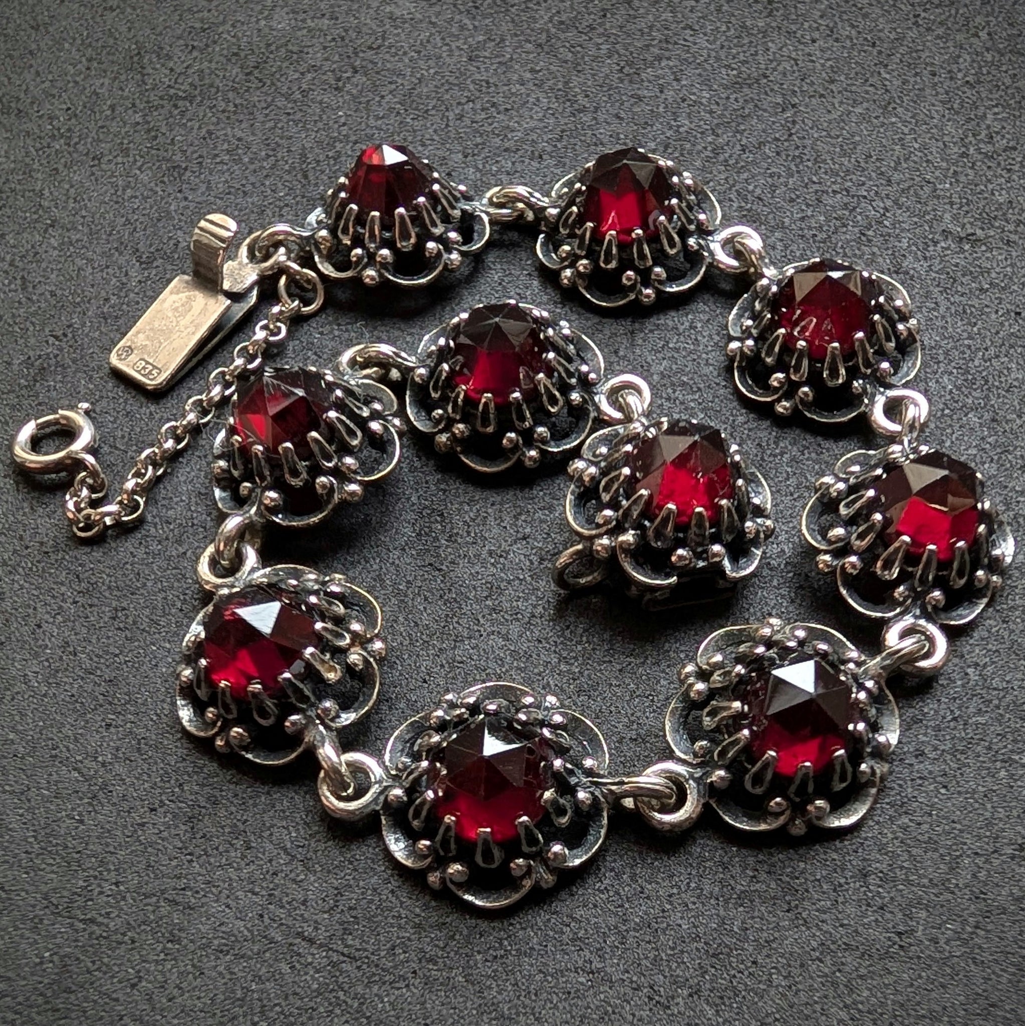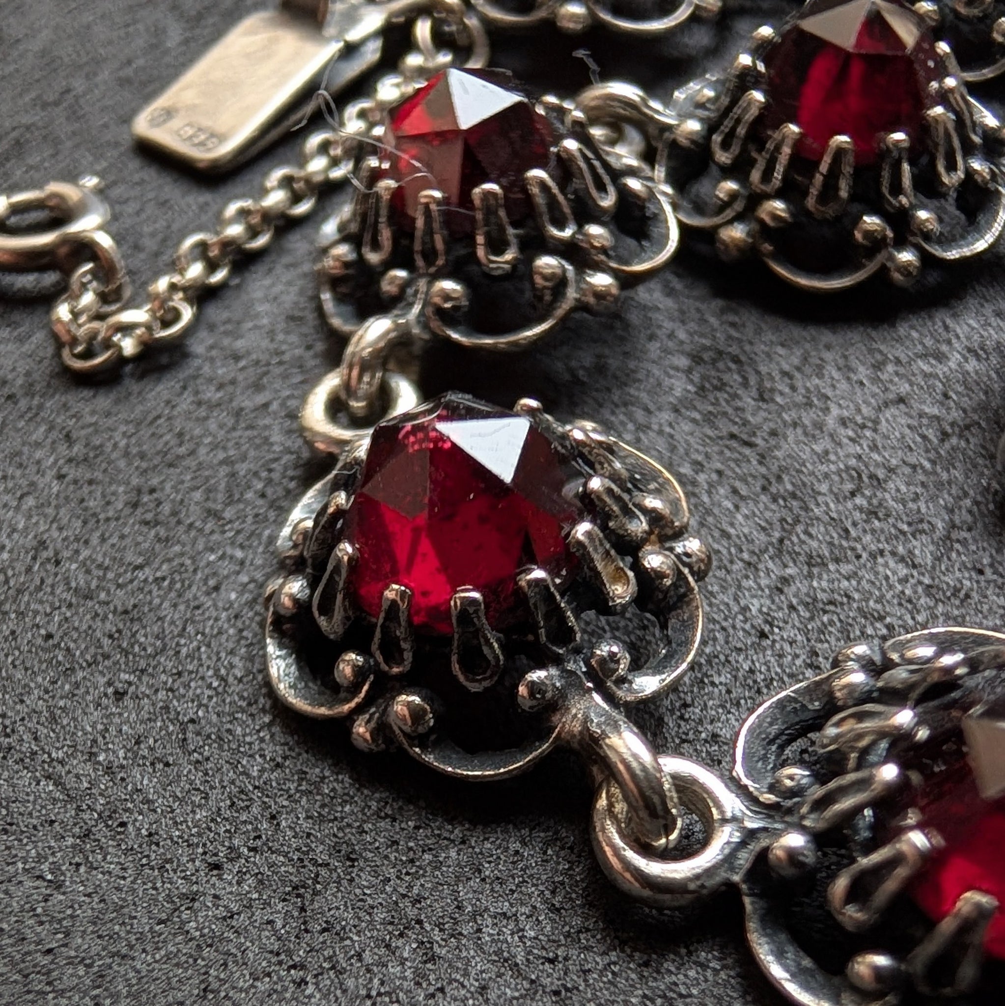 Vintage Granat Armband 835 Silber Tracht rot alt