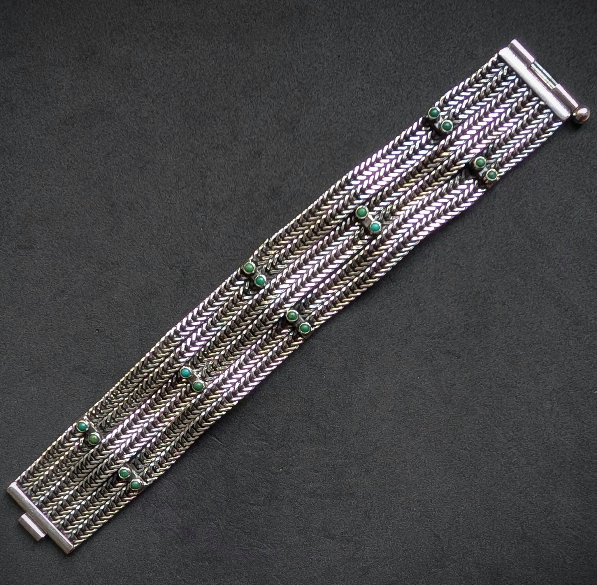 Vintage Gustav Hauber Midcentury Armband 835 Silber Türkis alt c. 1950 S