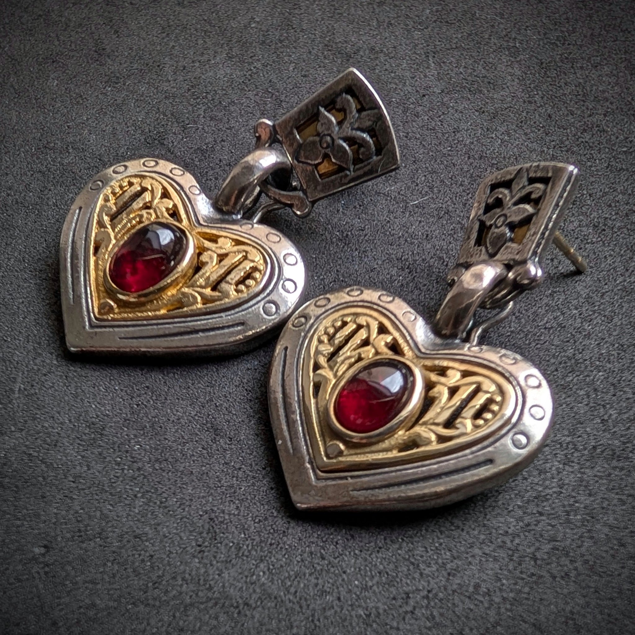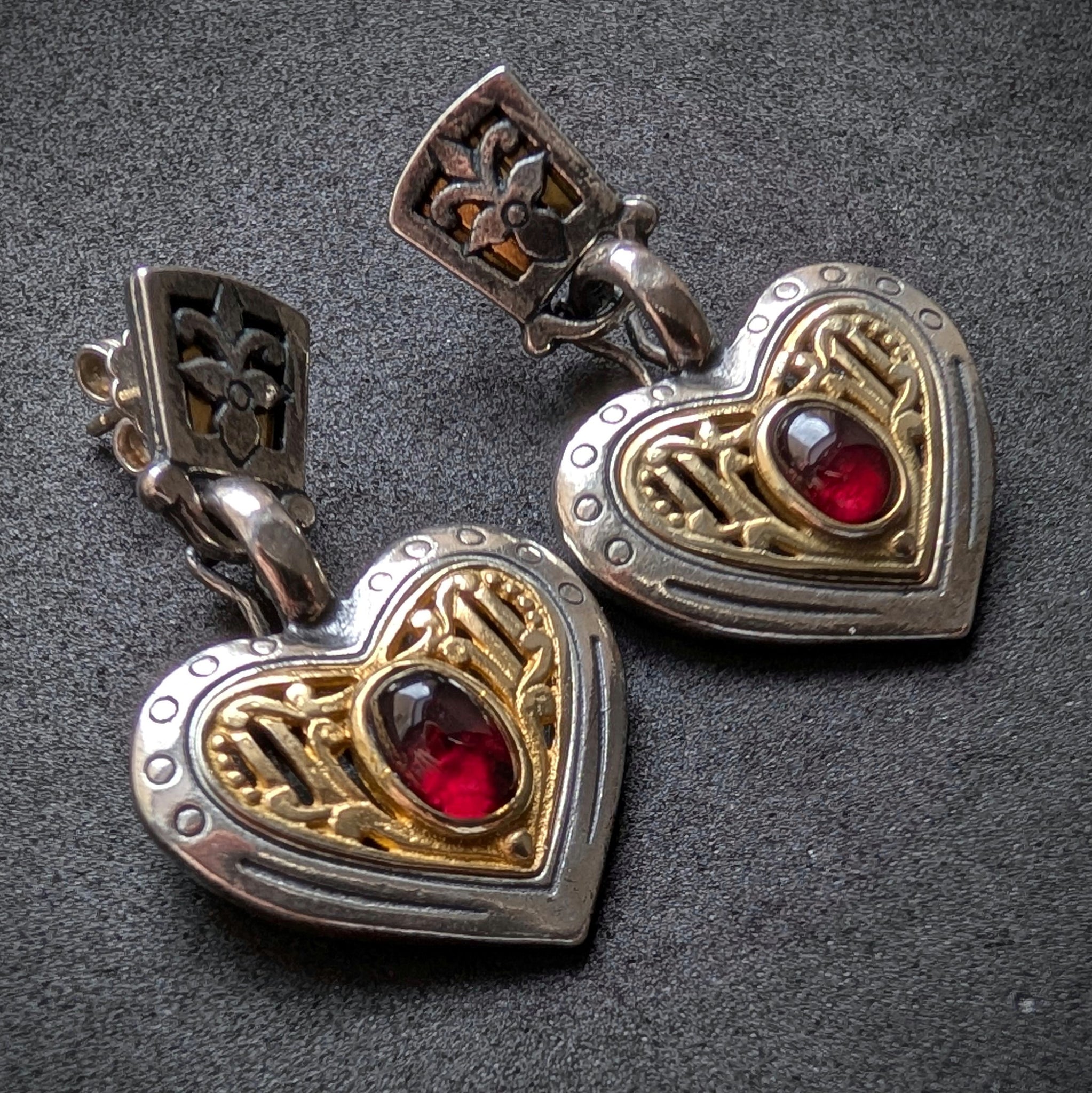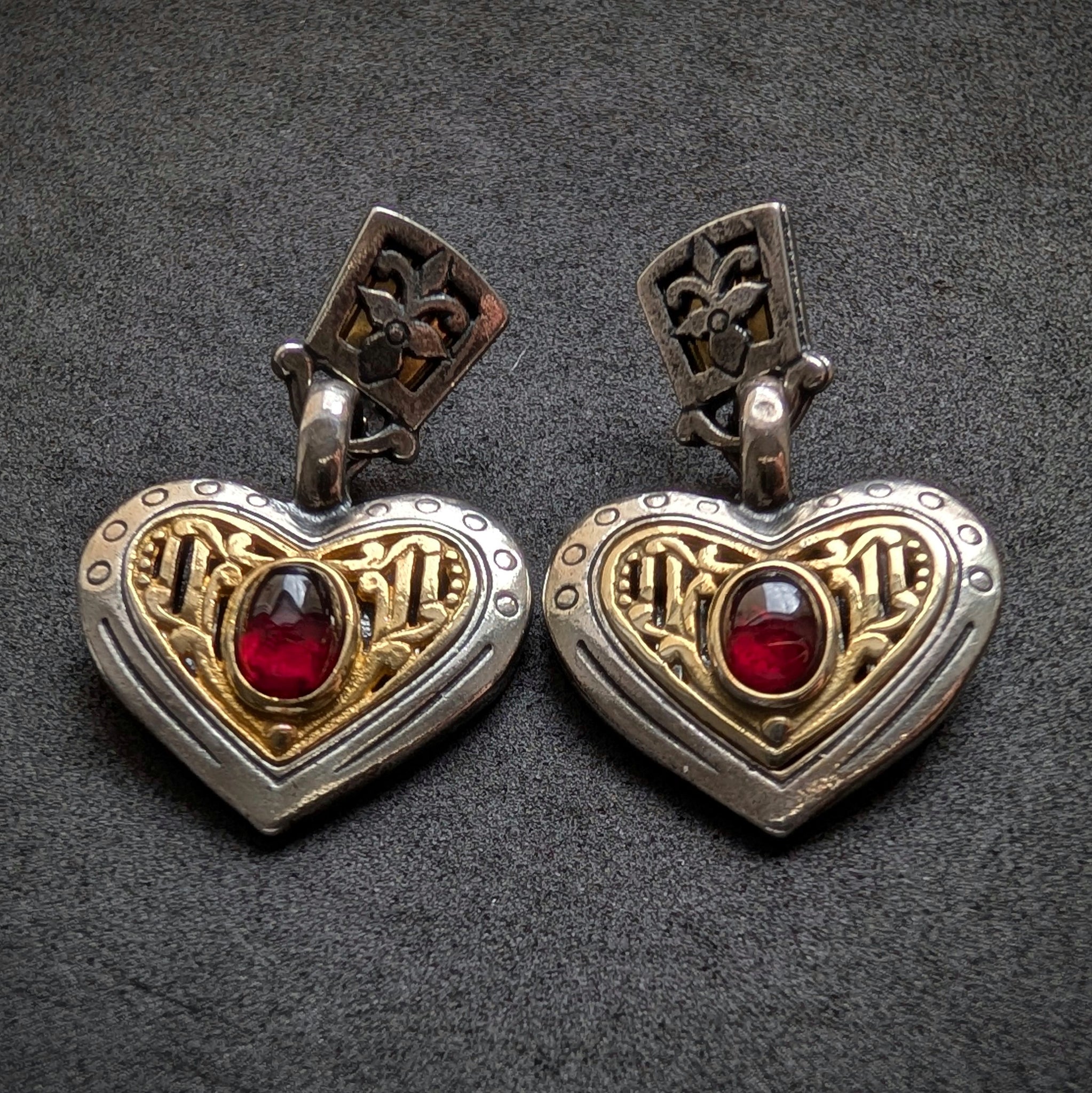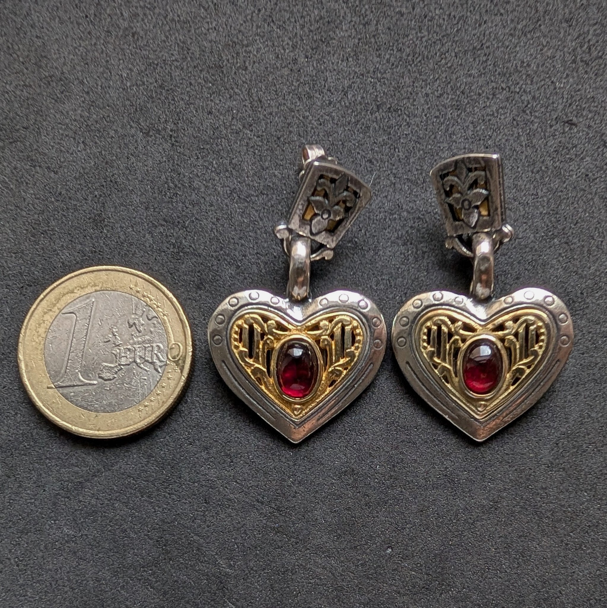 Vintage Tracht Herz Ohrringe 835 Silber vergoldet Granat Silberschmiedearbeit S