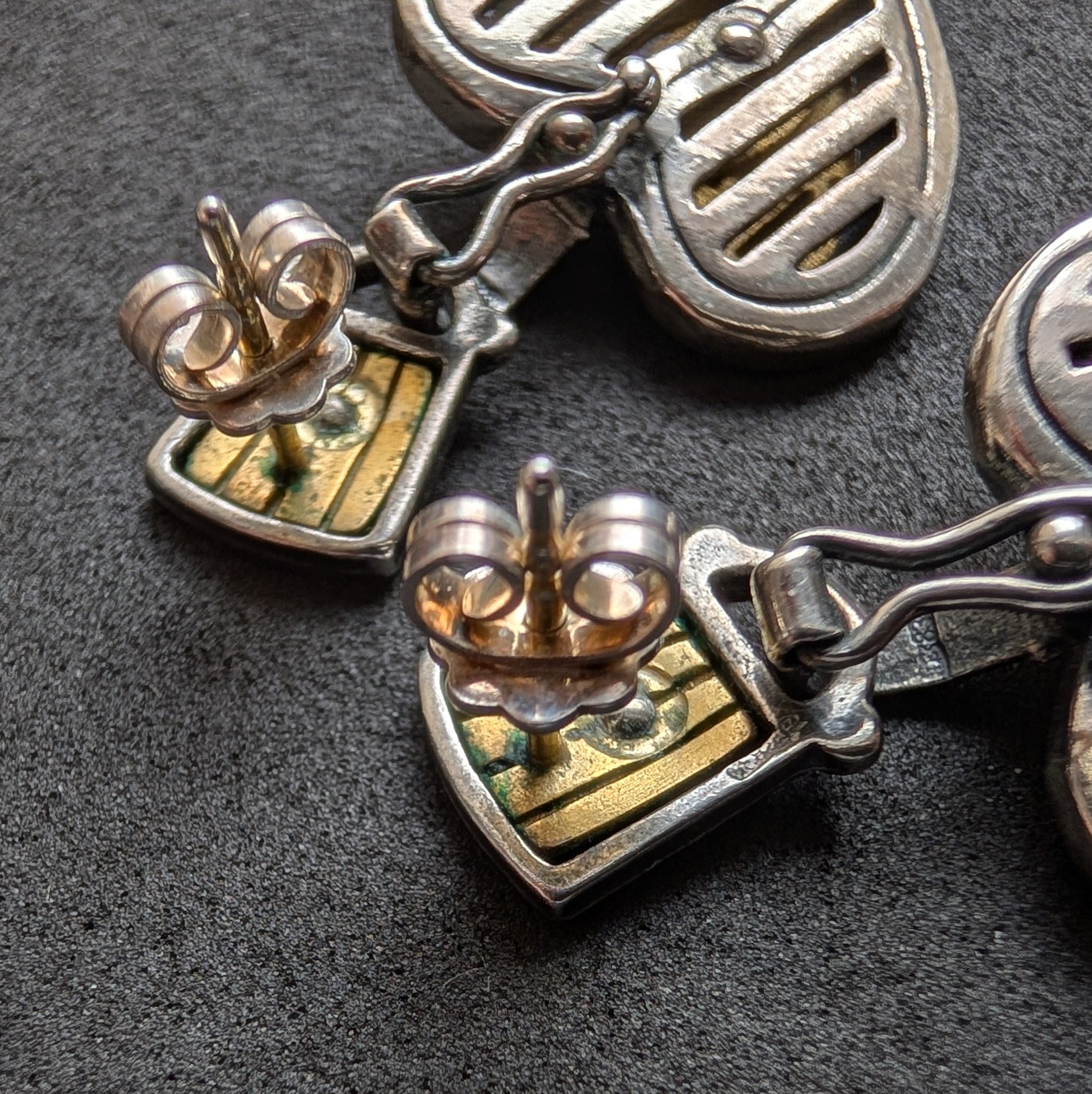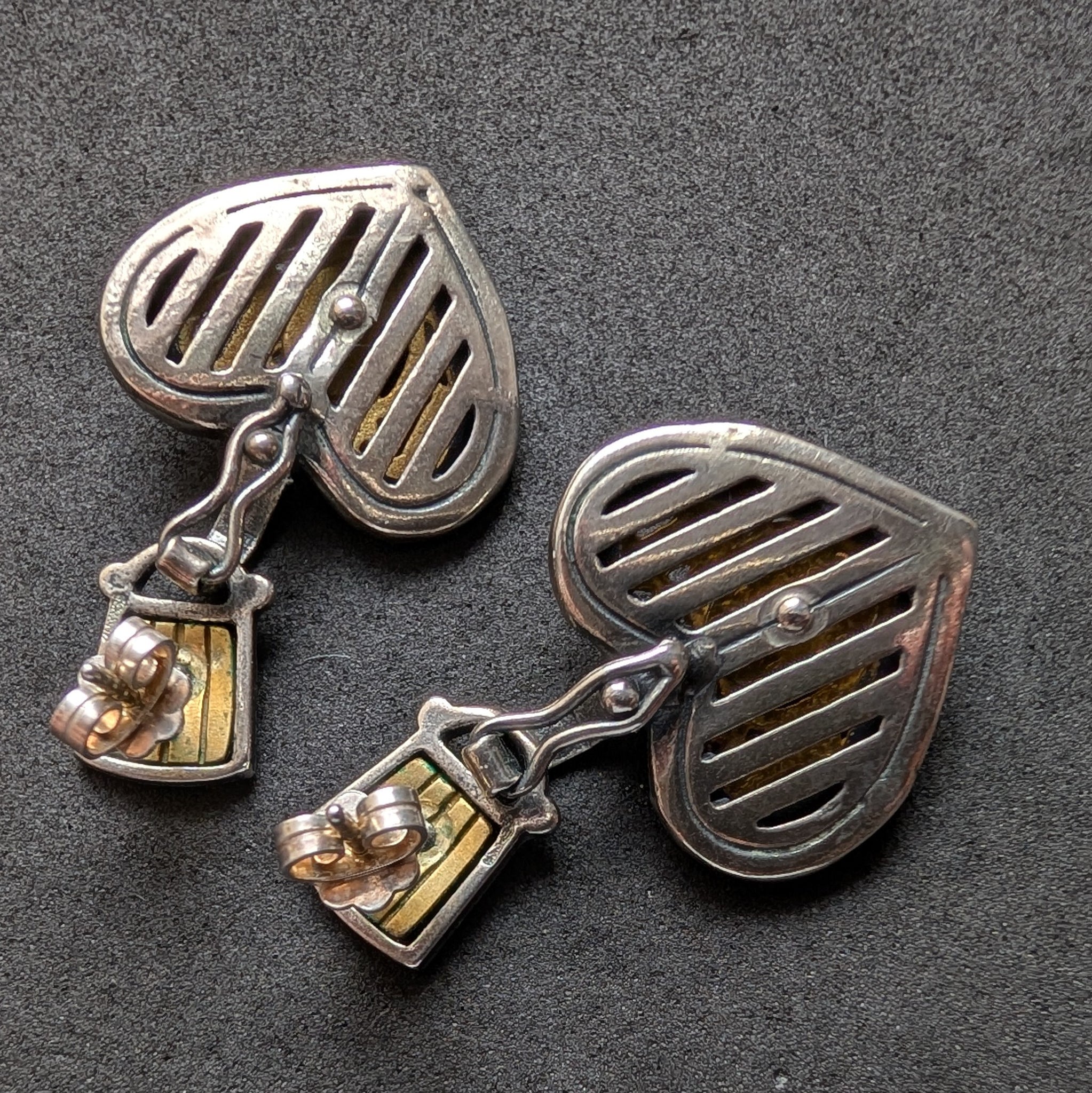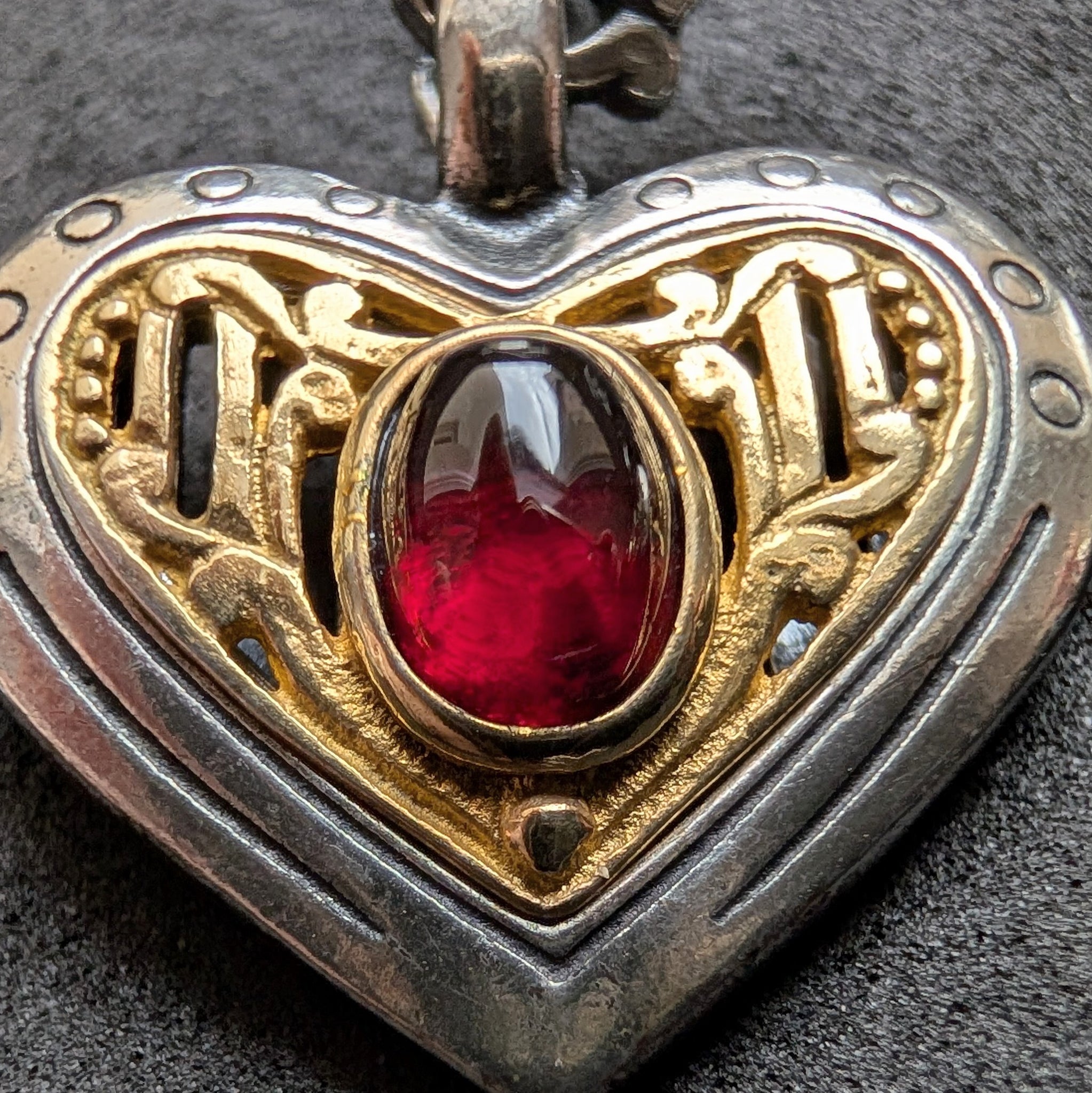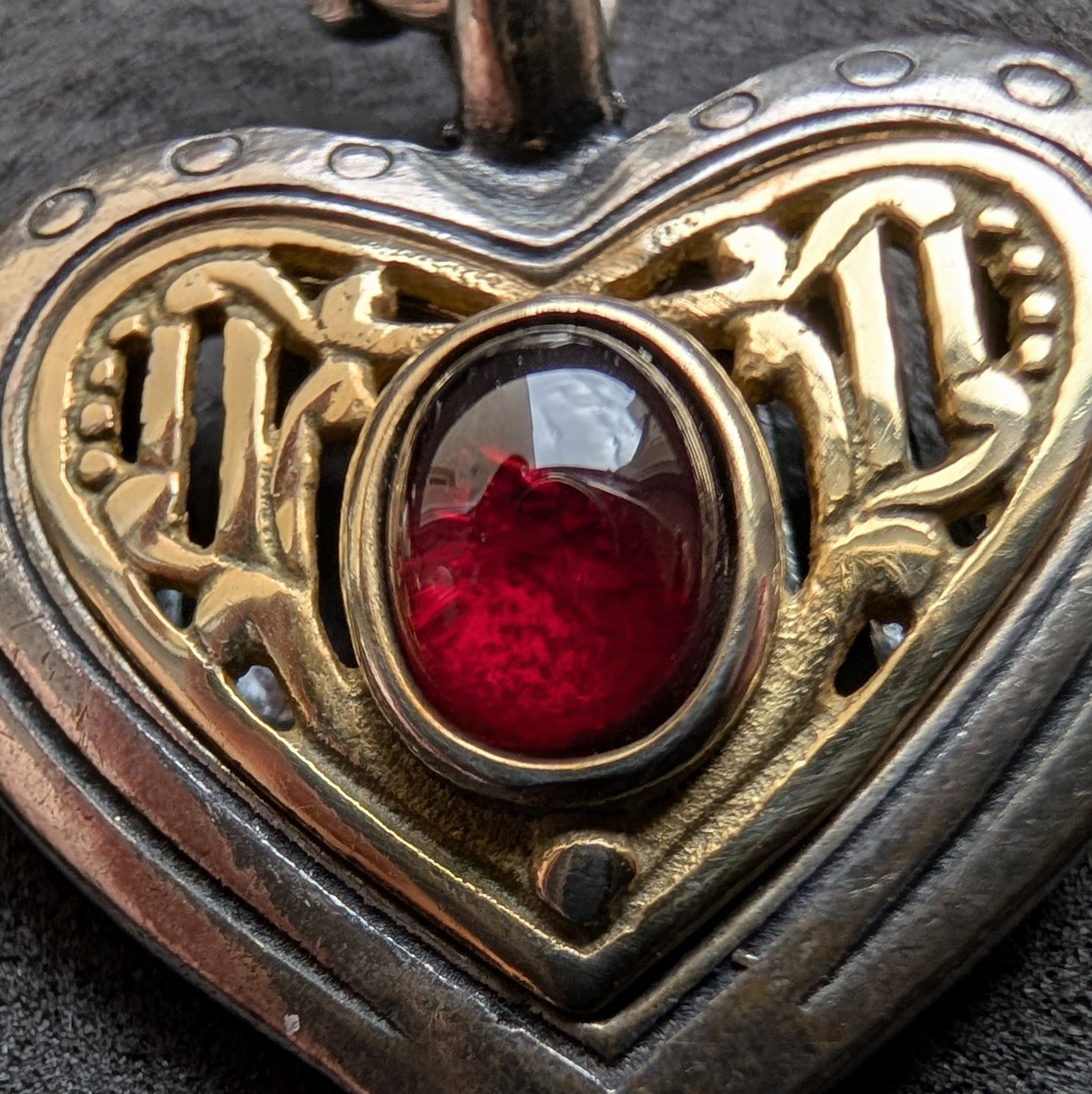 Vintage Tracht Herz Ohrringe 835 Silber vergoldet Granat Silberschmiedearbeit S